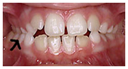 upper front teeth creating a crossbite. Careful monitoring of jaw growth and tooth